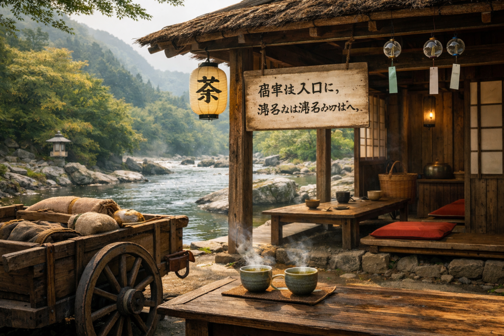 旅人が一服して、向こう岸へ渡る前に息を整える場所だ。ここでは、湯気の匂いより先に、言葉の温度が伝わる。主人は、それが気に入っていた。