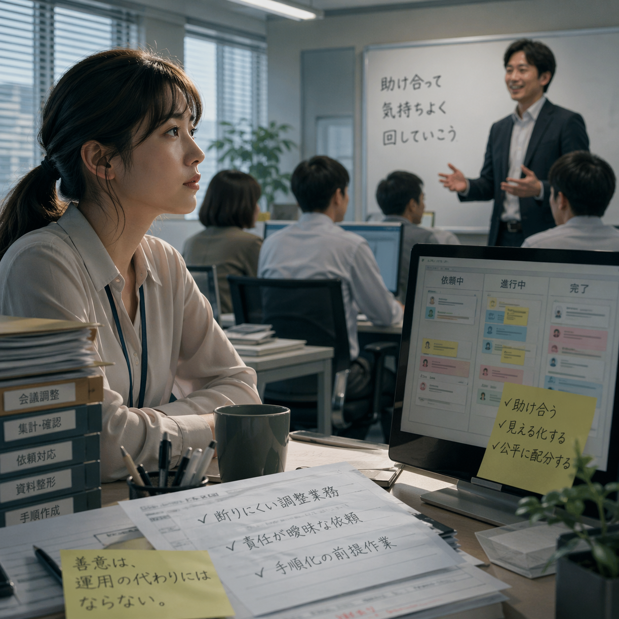 翌月、運用は少しだけ変わった。依頼は共有ボードに積まれるようになり、担当者の空き状況も見えるようになった。すべてが改善したわけではない。なお真帆に直接来る頼みごともあったし、榊原は相変わらず感じがよく、会議では人を傷つけない言い回しを選び続けた。